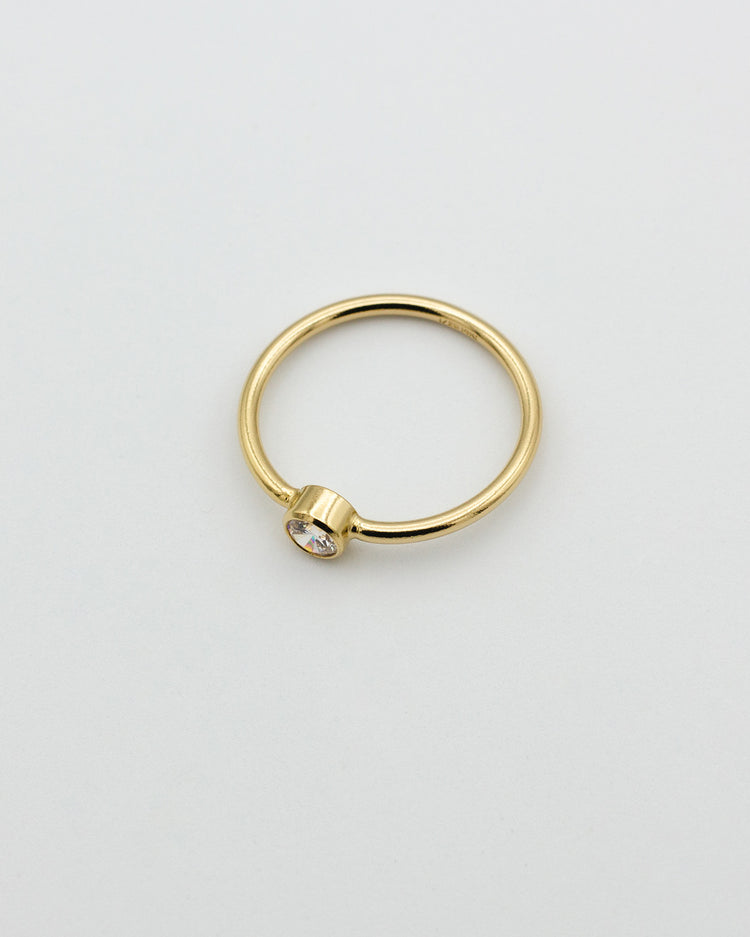 Wear this Solitaire Ring as a standalone piece or as part of a layered look. This dainty, 14k gold filled ring is perfect for everyday wear. The cubic zirconia stone adds a touch of sparkle and the minimalist design keeps it feeling modern and fresh.